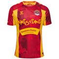 The 24/25 Christiania Sports Club (CSC) home shirt is once again a tribute to the Copenhagen sanctuary. The jersey is in the classic red and yellow colors, and a central element in the design is a camo-pattern with various Christiania icons.